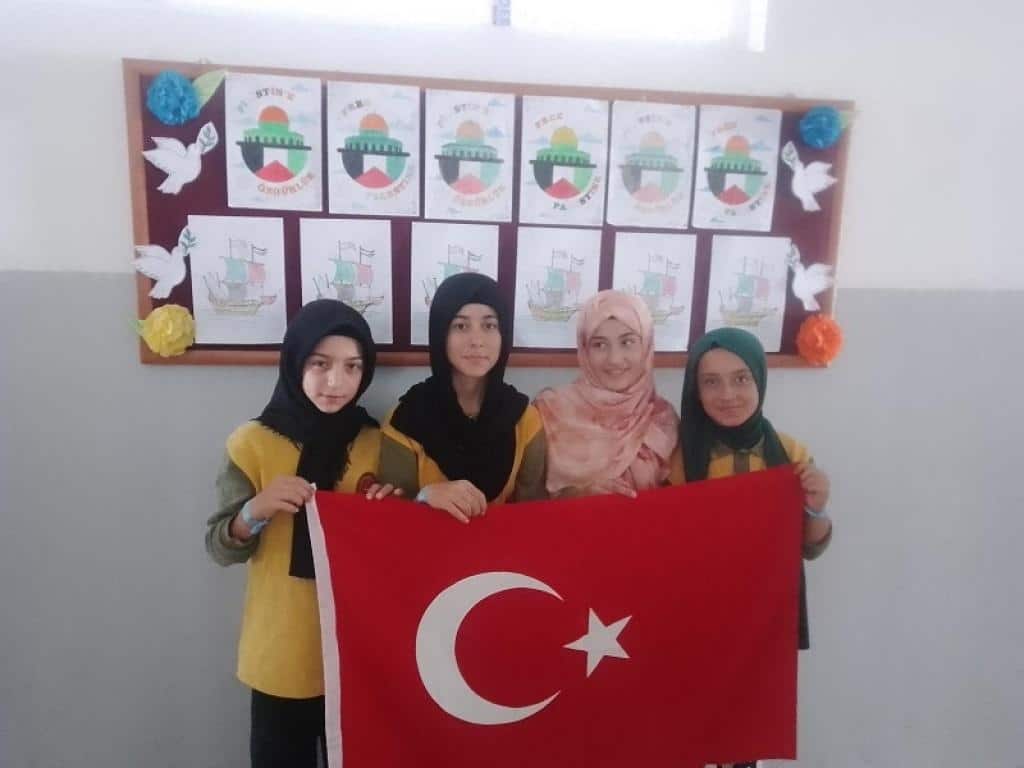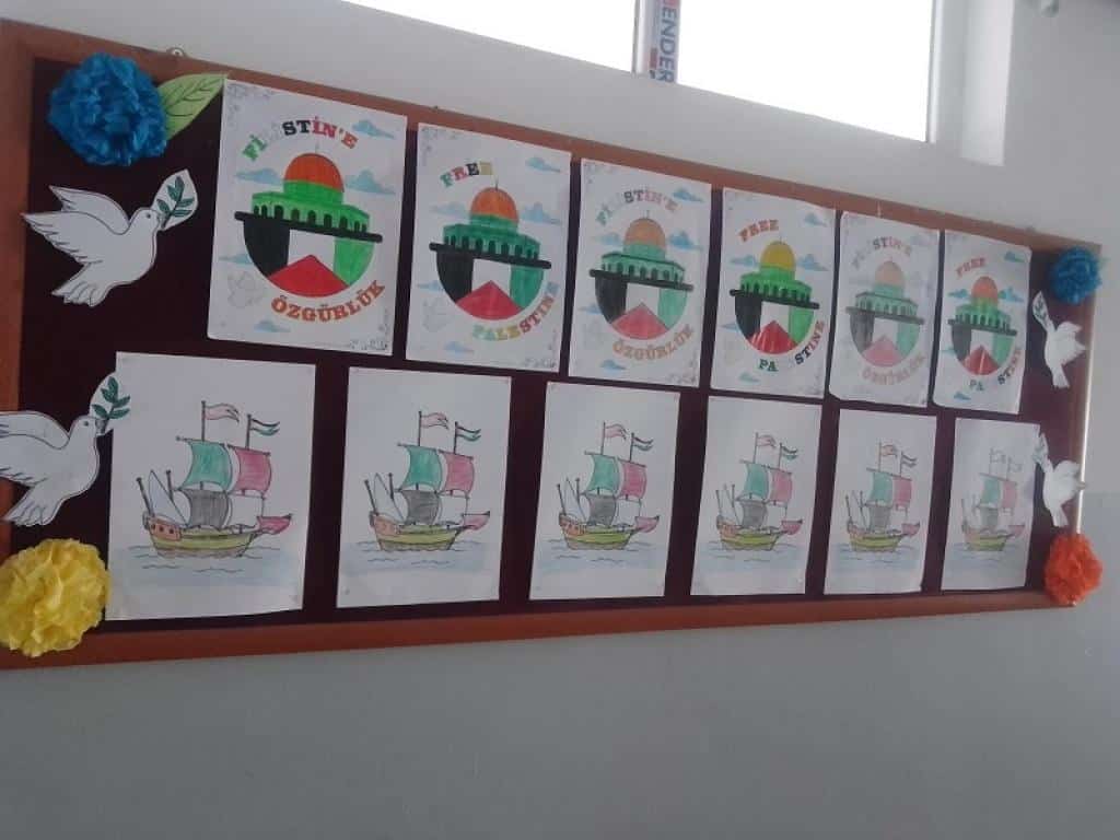 Okulumuz öğrencileri tarafından Filistine desteğimizi göstermek için mavi kurdela etkinliği yapılmıştır.Manevi olarak destek olduğumuzu belirtmek için pano oluşturarak barış, kardeşlik ve yardımlaşma duygularına yönelik farkındalık kazandırılmaya çalışılmıştır.